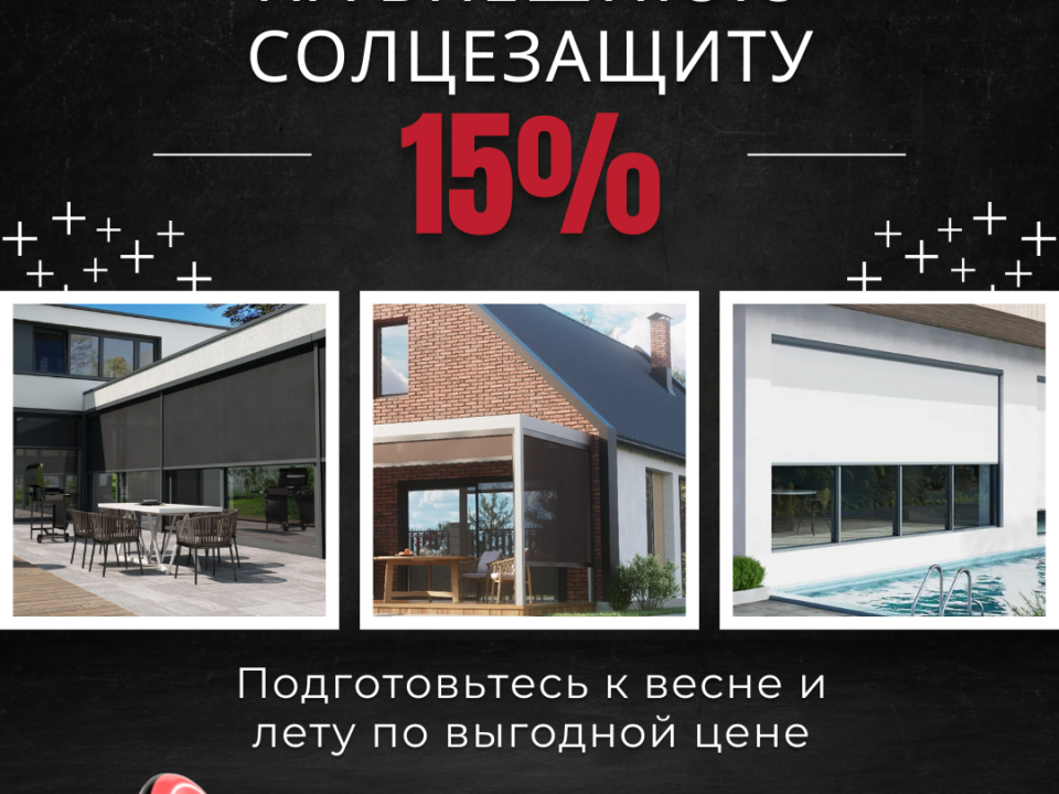 Скидка 15% на внешнюю солнцезащиту